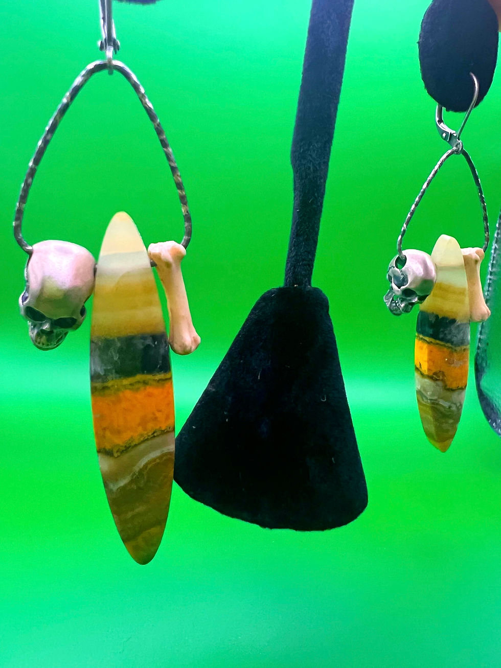 Rare Druzy Chrysocolla Spiked Hoop Earrings